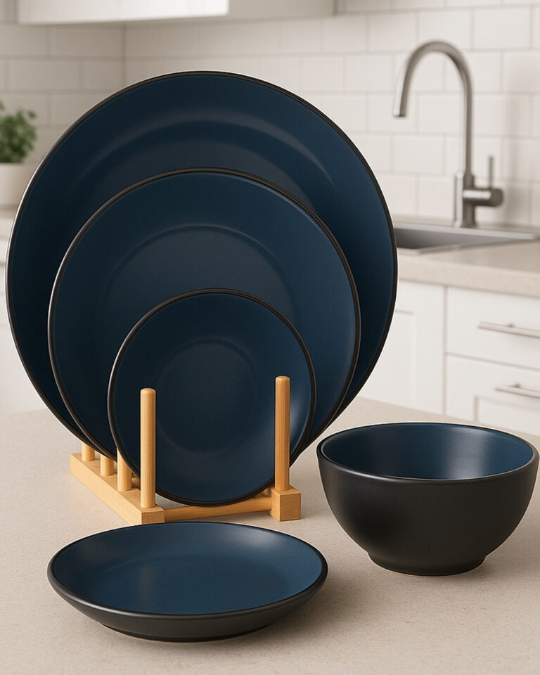 Set Pjatash Premium Keramike – Ngjyrë Blu e Errët